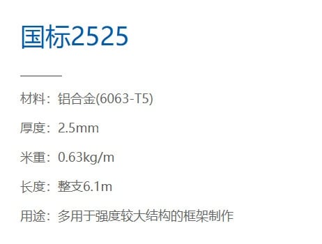 鋁型材國(guó)標(biāo)2525